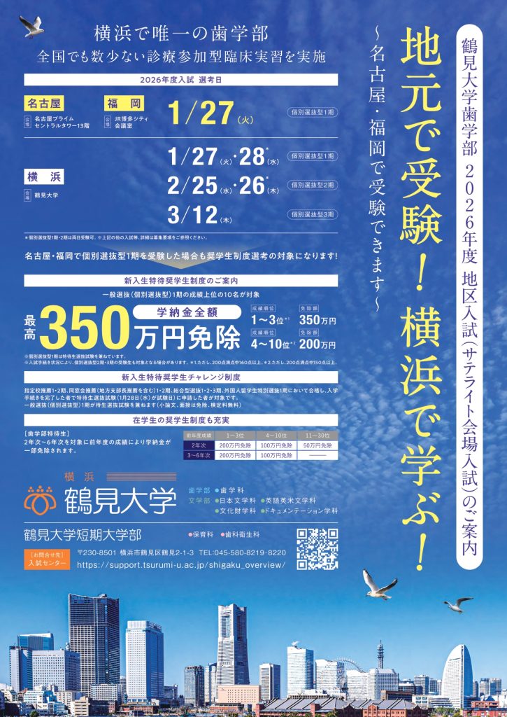 この機会にぜひ、鶴見大学歯学部の受験をご検討ください。